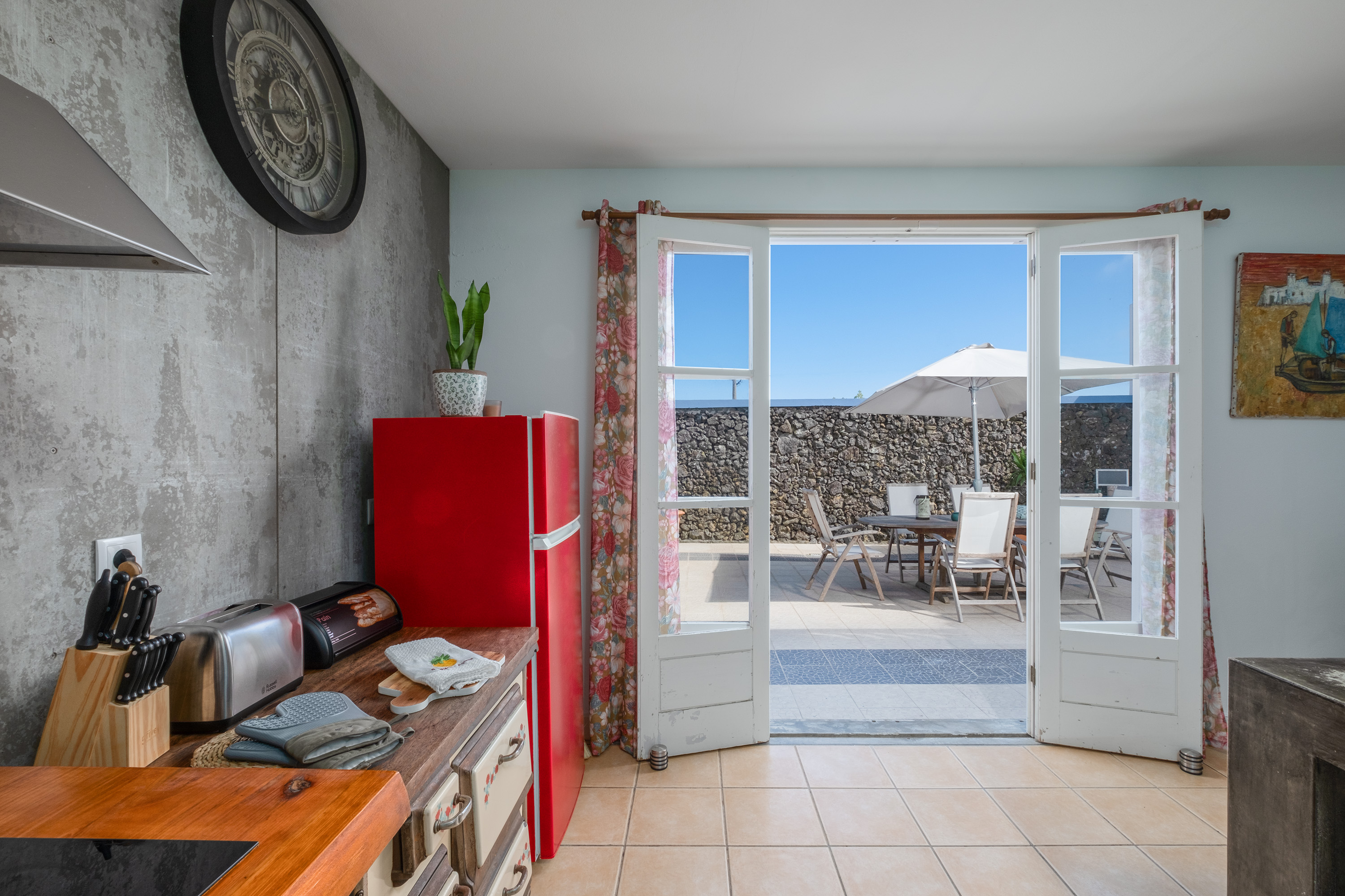Este apartamento conta com leves apontamentos de pedra, conta com dois quartos, sala e cozinha espaçosas e, ainda, pátio exterior.